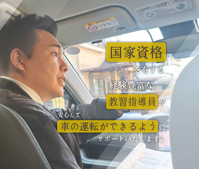 まずは、広い道や車通りの少ない道、他の車に迷惑がかからないような道を選び、基本となる発進・停止の操作からご指導いたします。